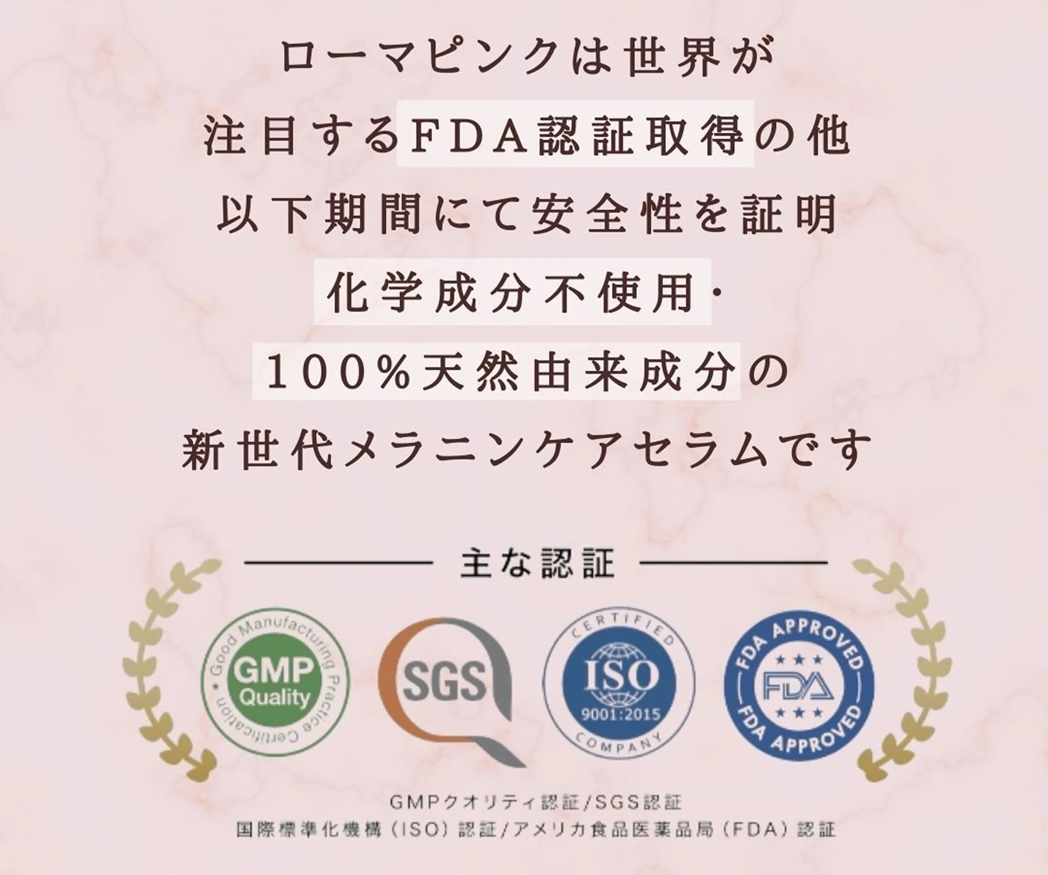 ローマピンクは、針やレーザーを使用しない施術のため、痛みがほとんどありません。麻酔も不要で、施術中は温かさを感じる程度です。アメリカFDA認証を受けた化粧品を使用しており、化学成分無添加の100%植物由来成分で構成されているため、デリケートな部位にも安心してご使用いただけます。